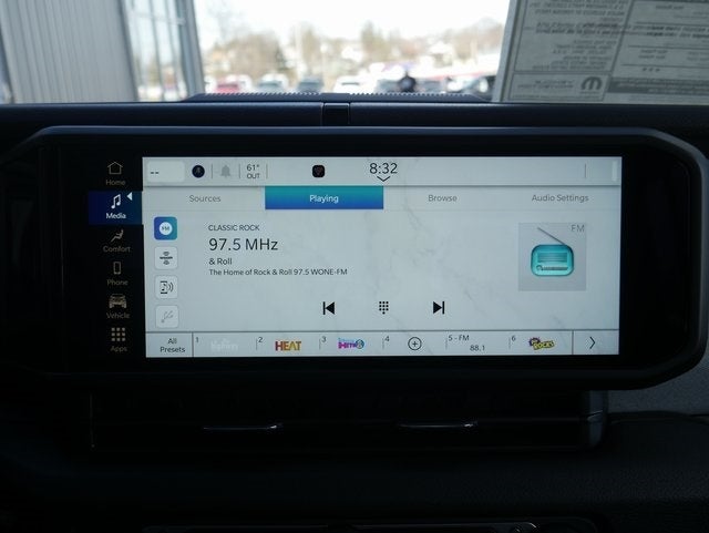 - Radio w/Seek-Scan, Clock, Speed Compensated Volume Control, Aux Audio Input Jack, Steering Wheel Controls, Voice Activation, Radio Data System and Uconnect External Memory Control