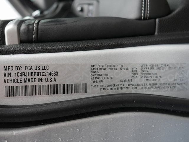 2026 Jeep Grand Cherokee Limited 4WD 4D Sport Utility, 4WD, 10 Speakers, 7 and 4-Pin Wiring Harness, AM/FM Radio: SiriusXM With 360L, AppLink/Apple CarPlay And Android Auto, Class IV Receiver Hitch, Dual-Pane Panoramic Sunroof, Front Dual Zone A/C, Front Fog Lights, Fully Automatic Headlights, Gloss Black Roof Rails, Heated Exterior Mirrors, Heated Front Seats, Heated Rear Seats, Heated Steering Wheel, Limited Reserve, Memory Seat, Nappa Leather Seats, Navigation System, ParkSense Front/Rear Park Assist With Stop, ParkView Rear Back-Up Camera, Passive Entry - Front/Rear Doors, Liftgate, Power Door Mirrors, Power Driver Seat, Power Liftgate, Power Passenger Seat, Quick Order Package 2CR Limited Reserve, Radio: Uconnect 5 Nav With 12.3 Display, Rain Sensitive Windshield Wipers, Rear Back-Up Camera Washer, Rear Load Levelling Suspension, Rear Window Defroster, Side Distance Warning, Speed Control, Split Folding Rear Seat, Surround View Camera System, Trailer Tow Package, Ventilated Front Seats, Wheels: 20 x 8.5 Black Painted Aluminum, Wireless Charging Pad. Silver Zynith, 2.0L I4 PDI Turbocharged DOHC 16V LEV3-SULEV30 324hp, 8-Speed Automatic.