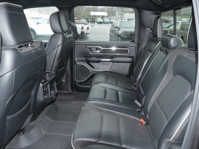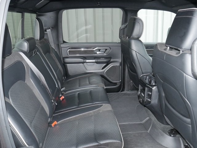 One Owner!! 2022 Ram 1500 Laramie Night Edition 4WD 4D Crew Cab, 10 Speakers, 2nd Row In Floor Storage Bins, 3.21 Rear Axle Ratio, 33 Gallon Fuel Tank, AM/FM Radio: SiriusXM Capabilty, Anti-Spin Differential Rear Axle, Apple CarPlay/Android Auto, Blind Spot & Cross Path Detection, Body Color Front Bumper, Driver Seat Memory, Dual Exhaust w/Black Tips, Exterior Mirrors Courtesy Lamps, Exterior Mirrors w/Heating Element, Exterior Mirrors w/Memory, Exterior Mirrors w/Supplemental Signals, Front Dual Zone A/C, Front Fog Lights, Fully Automatic Headlights, GPS Navigation, Harman/Kardon 19 Speaker Premium Sound, Heated Front Seats, Heated Steering Wheel, Laramie Level II Equipment Group, Leather Steering Wheel, Leather Trimmed Bucket Seats, Mopar Black Tubular Side Steps, ParkSense Front/Rear Park Assist w/Stop, ParkView Rear Back-Up Camera, Power 8-Way Driver & Passenger Seats, Quick Order Package 25H Laramie, Radio: Uconnect 5 Nav w/8.4 Display, Rain Sensitive Windshield Wipers, Rear 60/40 Folding Seat, Rear Wheelhouse Liners, Rear Window Defroster, Remote Tailgate Release, Speed Control, Sport Performance Hood, Trailer Brake Control, Ventilated Front Seats, Wheels: 22 x 9 Forged Aluminum, Wireless Charging Pad. Granite Crystal Metallic Clearcoat, HEMI 5.7L V8 Multi Displacement VVT, 8-Speed Automatic. Fully Serviced!! Remainder Of Factory Warranty Still Applies!!